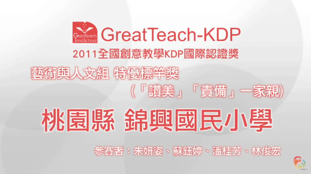 桃園縣錦興國民小學是唯一一間獲得兩科標竿獎的學校,而朱妍姿老師,蘇鈺婷老師,潘桂芳老師及林俊宏老師的教學方案 ” 讚美、責備一家親 ” 獲得了藝術與人文標竿獎,很特別的是,這份教案是結合戲劇教學。這教案的緣起是因為現在的小孩把老師的給予教導及指正當作耳邊風,而且還會在背後謾罵師長,甚至公然不敬,因此,為了指正同學們錯誤觀念,利用學生喜愛的故事、戲劇及音樂來探討問題。