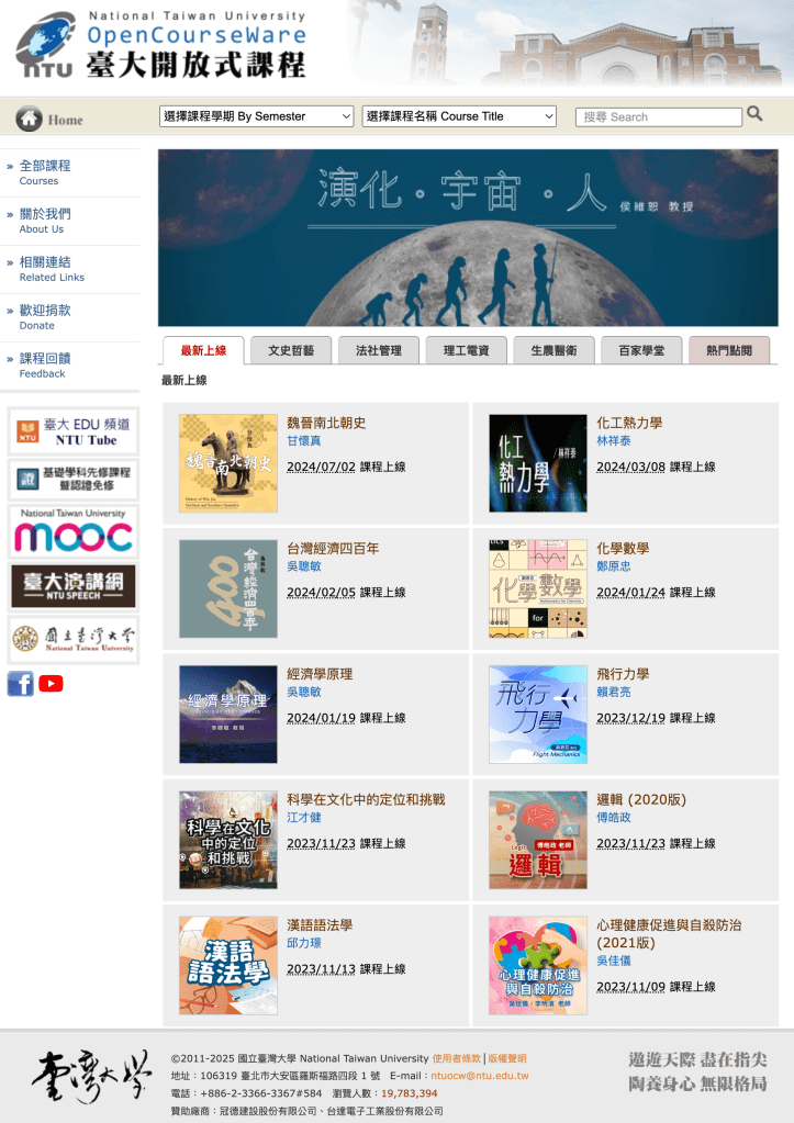 台灣大學數百門課程的全程錄影和ppt講義,全部免費。感恩台大,讚嘆台大。
